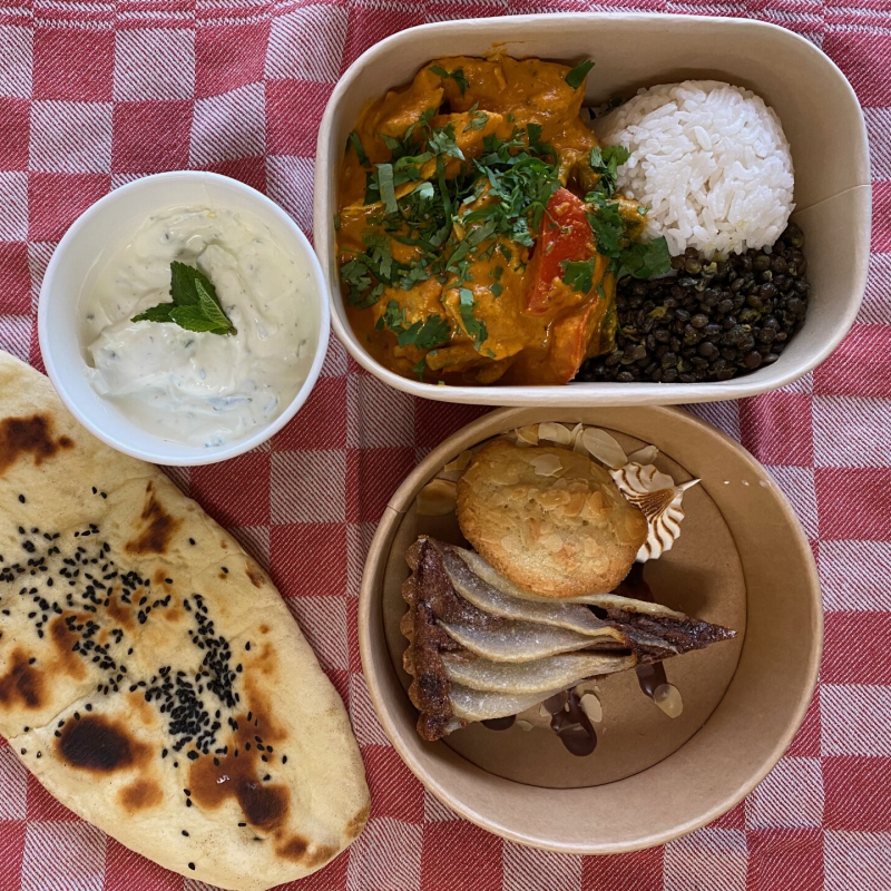 Het is mogelijk om maaltijden aan te leveren in tiffins, een duurzaam alternatief voor disposable bakjes.