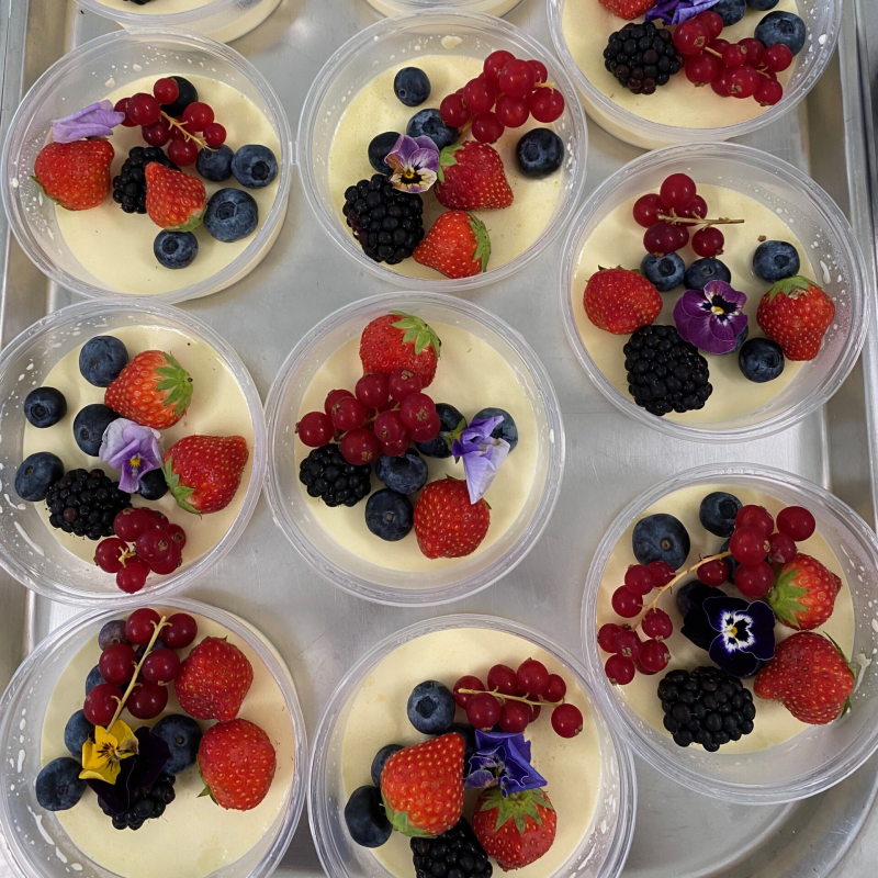 Hinke maakt graag toetjes en haar toetjesbuffet is fameus. Een tafel vol lekkernijen opgediend in kleine glaasjes en schaaltjes, zodat gasten meerdere toetjes kunnen proeven. Maar het is natuurlijk ook mogelijk om een los dessert te kiezen of de maaltijd af te sluiten met een feestelijke taart.